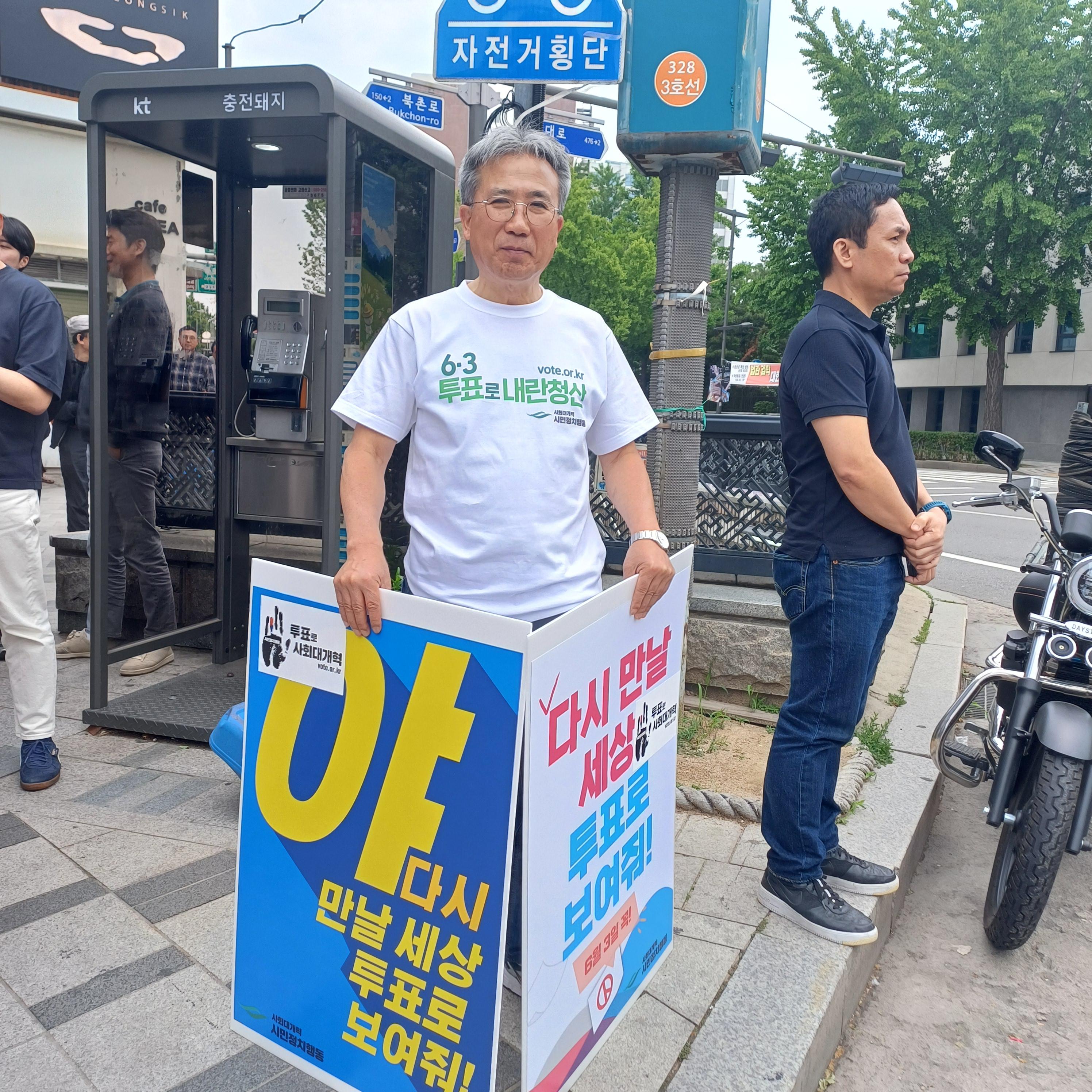 5월 23일 금요일 오전 11시 30분~12시 30분 안국역 일대에서 시민정치행동 유권자운동본부에서 3차 유권자운동 피켓팅을 했다.