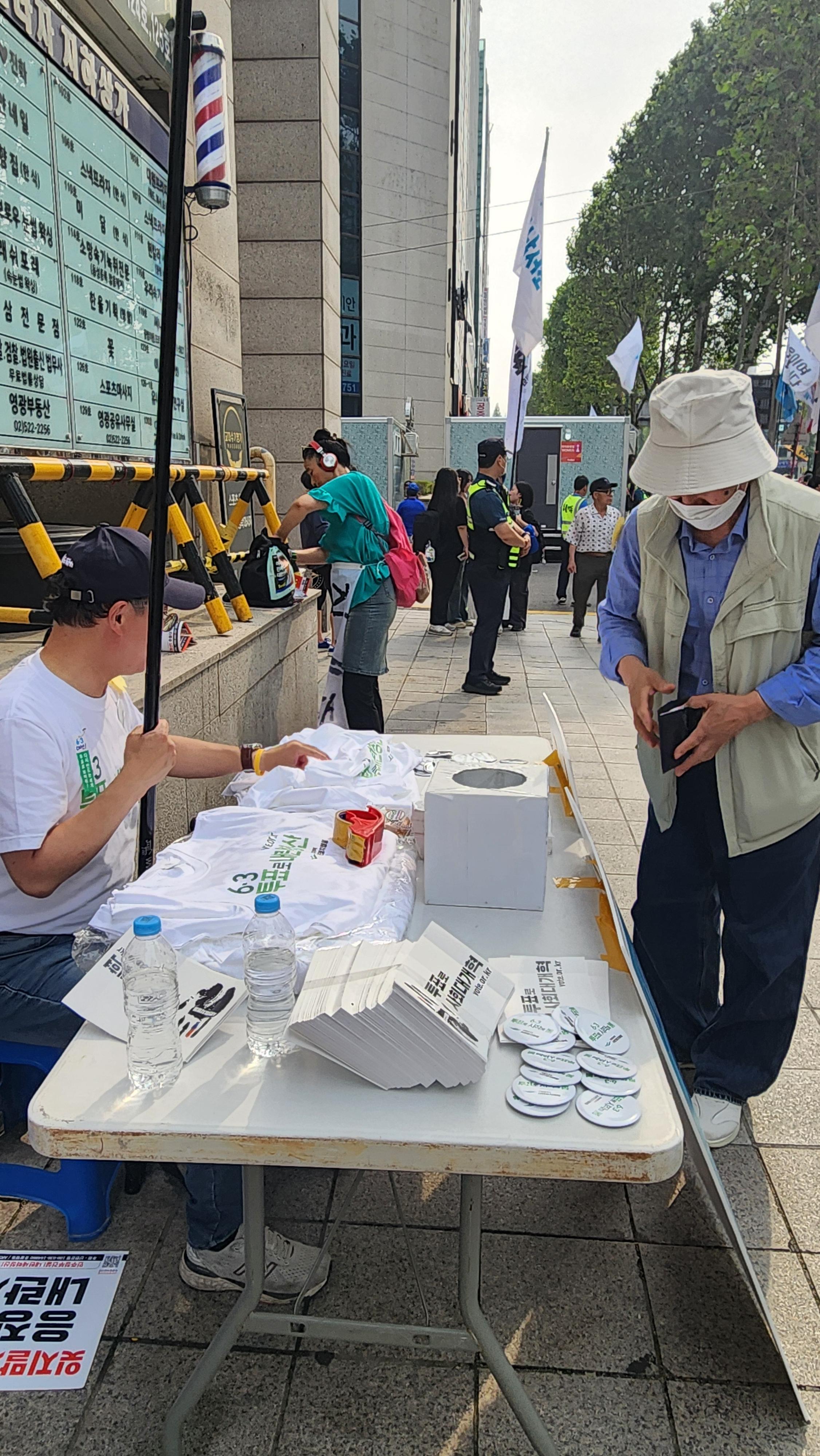 5.31.(토) 142차 촛불행동 집회에 시민정치행동 유권자운동본부가 참석하여 개인들이 할 수 있는 유권자운동을 알리고, 투표참여독려운동에 함께할 수 있도록 홍보하였다.