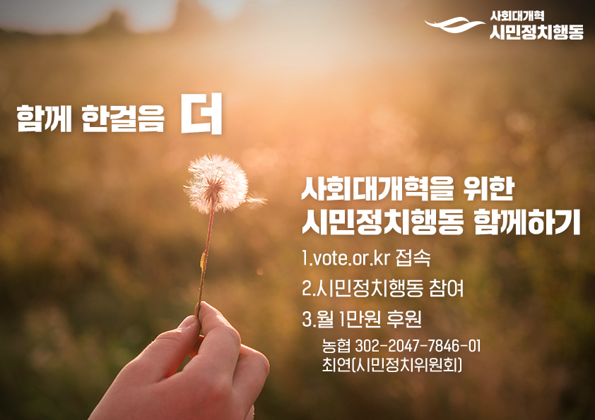 앞으로도 사회대개혁 시민정치행동에 많은 관심과 참여를 부탁드립니다.