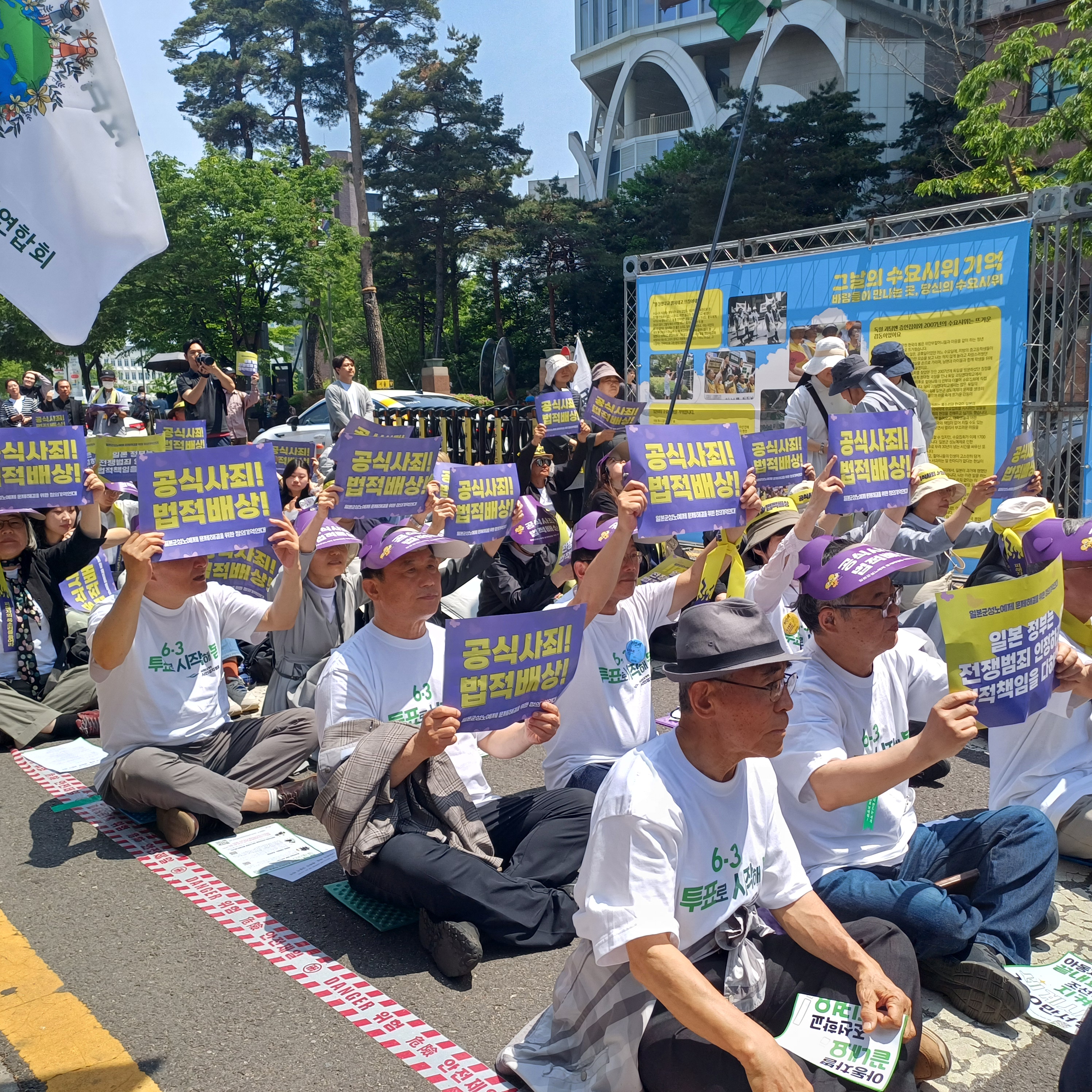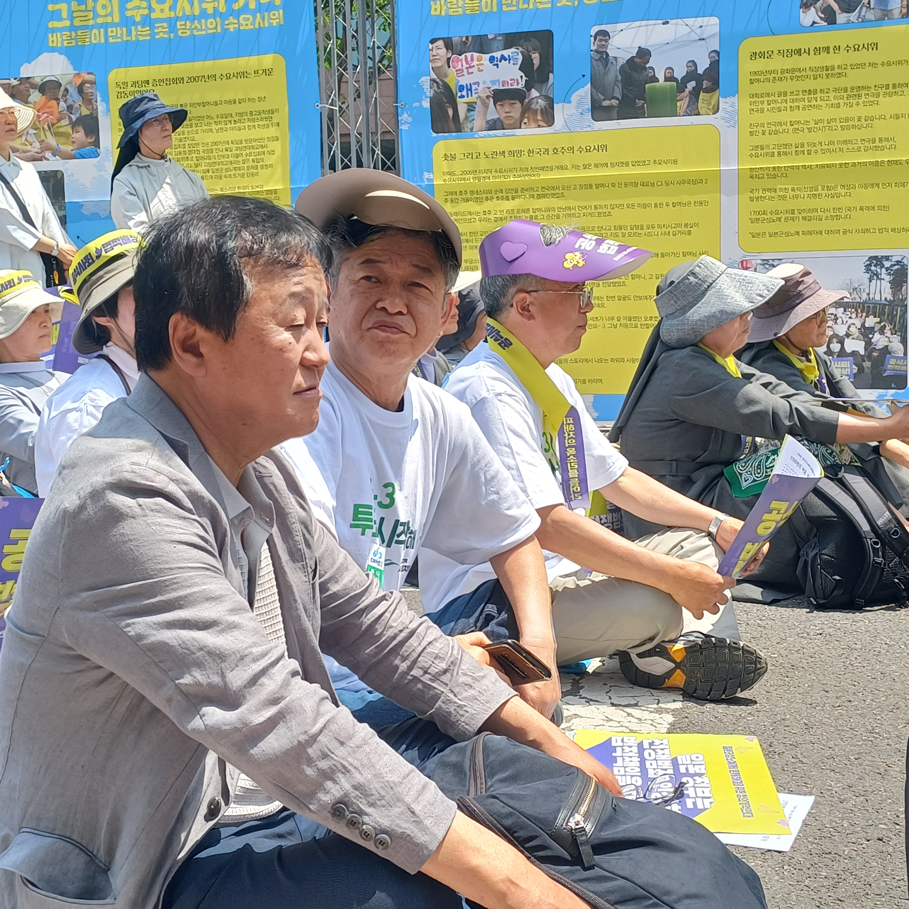 유권자운동본부 공동본부장님(김애영 김태일 최병모)들과 함께 유권자운동을 실천하고 있는 분들 중 15명이상이 5월 14일 1700차 '일본군 성노예제 문제해결을 위한 정기 수요집회'에 참석함.