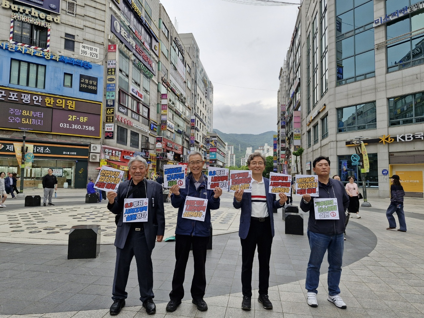 경기중부시민정치행동에서 5.22(목) 명학역 주변에서 '차별금지법 노란봉투법 제정', '6.3투표 사회대개혁 실현하자', '내란수괴 윤석열 아바타 김문수X', '국힘해체 사회대개혁 실현', '균형외교 군사주권 회복', '검찰독재 사법카르텔 심판하자', '헌법부정 법치부정 국힘해체', '내란옹호 막장정치 국힘해체', '적대대결 전쟁조장세력 심판하자', '극우반동 전광훈 아바타 김문수X', '물가폭등 민생파단 국힘심판', '불법계엄 내란세력 심판하자', '종전선언 평화협정 체결', '국힘해체 사회대개혁 실현', '내란옹호 탄핵반대 김문수X', '기후정의 탄소중립 실현' 등의 손피켓을 들고 유권자 운동을 벌였다.